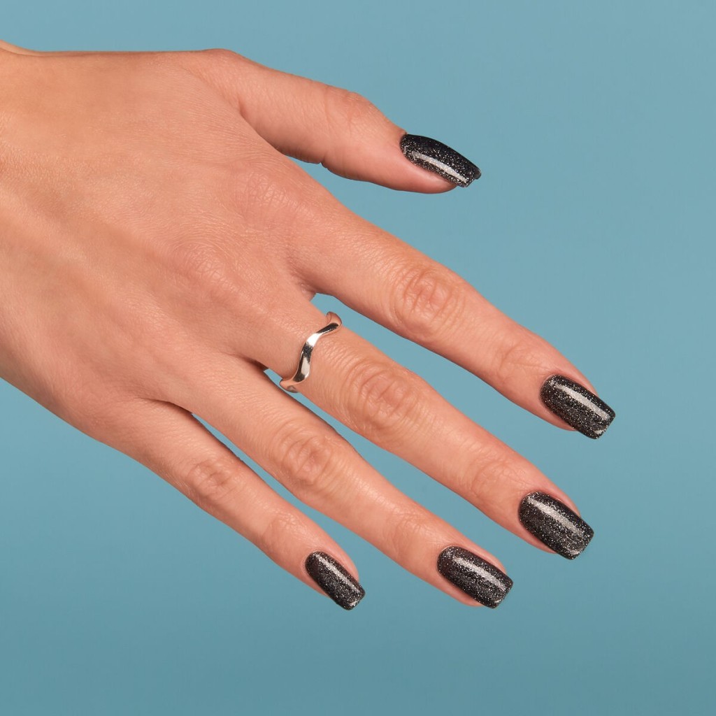 Ciemny jak noc hybrydowy lakier z połyskującymi drobinkami, niczym gwiaździste niebo. Pełen zmysłowości, klasyczny i wyrafinowany – dokładnie taki jak Ty!
