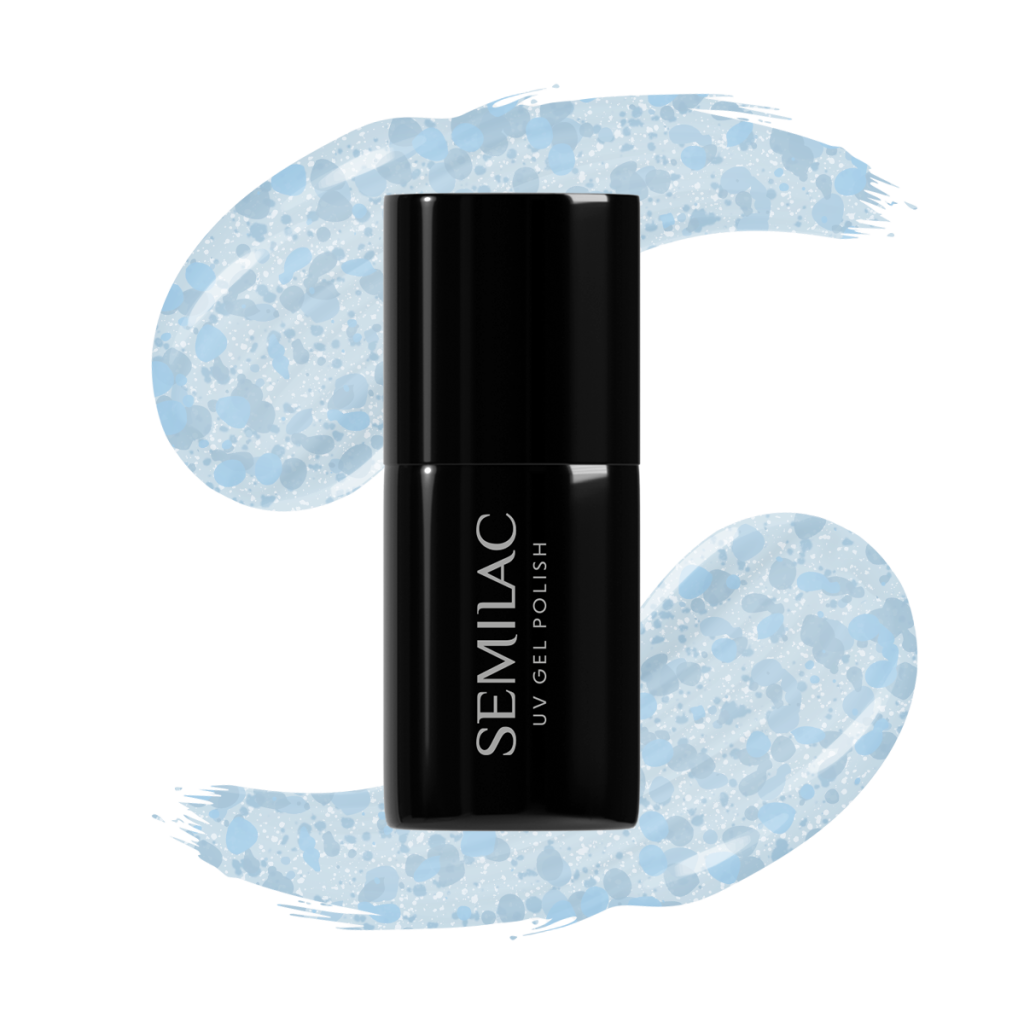 Nałóż cienką warstwę lakieru na zmytą i utwardzoną bazę hybrydową według własnych preferencji (zalecamy takie produkty Semilac jak: BB Base, Fiber Base, One Step, Extend 5w1 czy Extend 5w1 Care), a następnie utwardź ją przy użyciu lampy UV LED. Nie nakładaj bezpośrednio na naturalną płytkę paznokcia. Jeśli chcesz uzyskać bardziej intensywny kolor, możesz nałożyć kolejną warstwę. Skończ stylizację, aplikując i utwardzając wybrany Top Semilac pozbawiony niebieskiej poświaty.