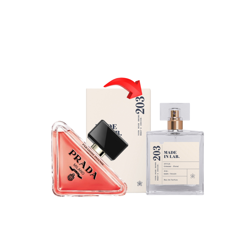 Made in Lab 203 to zmysłowa woda perfumowana dla kobiet, której kompozycja została zainspirowana nowoczesnym charakterem Prada Paradoxe Intense. Zapach stworzono z myślą o kobietach, które kochają intensywność, elegancję oraz wyraziste, pełne głębi aromaty.