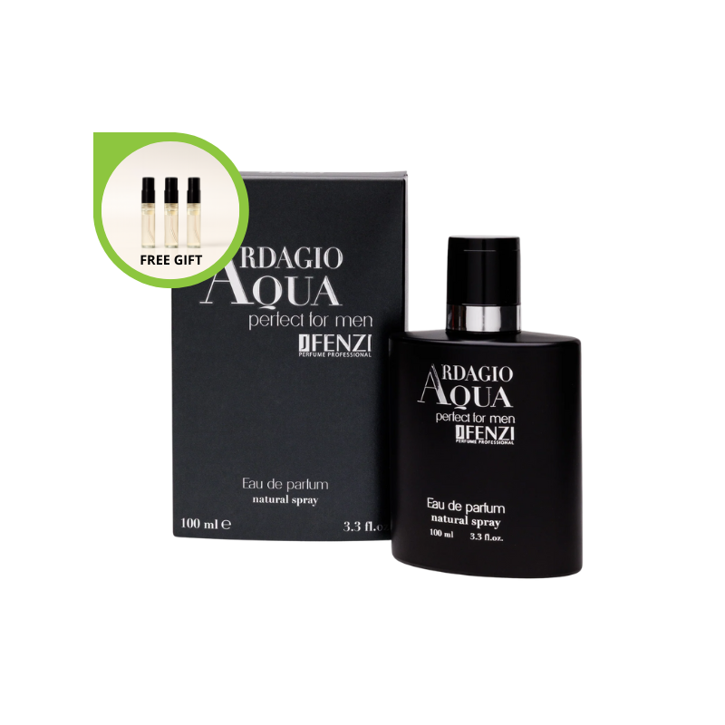 JFenzi Ardagio Aqua Perfect For Men to zapach stworzony dla mężczyzn pewnych siebie, aktywnych i ceniących harmonię świeżości, elegancji i zmysłowości. Aromatyczno-wodna kompozycja idealnie sprawdza się na co dzień, szczególnie w ciepłe dni, dzięki orzeźwiającym nutom, które dodają energii i lekkości.