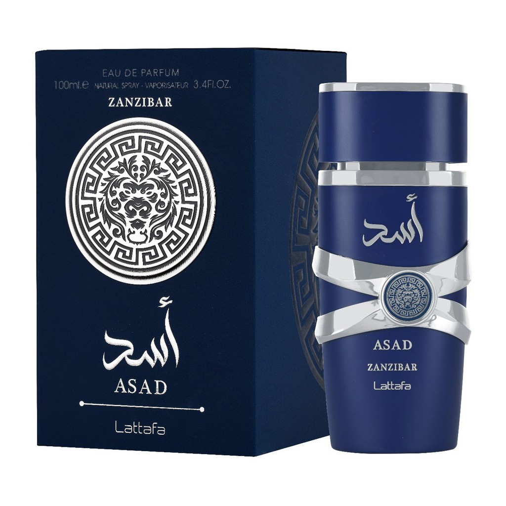 Lattafa to marka znana z tworzenia luksusowych zapachów, łączących to, co najlepsze w tradycyjnej perfumerii z nowoczesnymi trendami. Flakon Lattafa Asad Zanzibar jest elegancki i stylowy, w głębokim niebieskim kolorze z srebrnymi akcentami podkreślającymi jego ekskluzywny charakter.