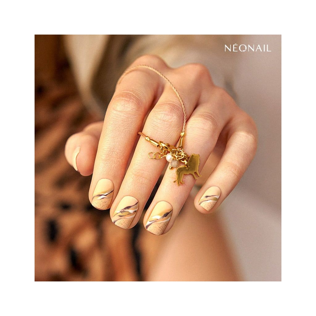 Półkryjąca baza coverowa w kolorze brzoskwiniowym z błyszczącą złotą drobinką o elastycznej formule, która dopasowuje się do każdej płytki paznokcia i wtapia się w naturalne tony skóry.