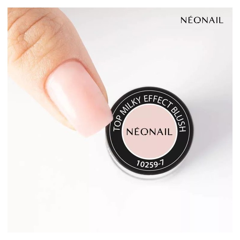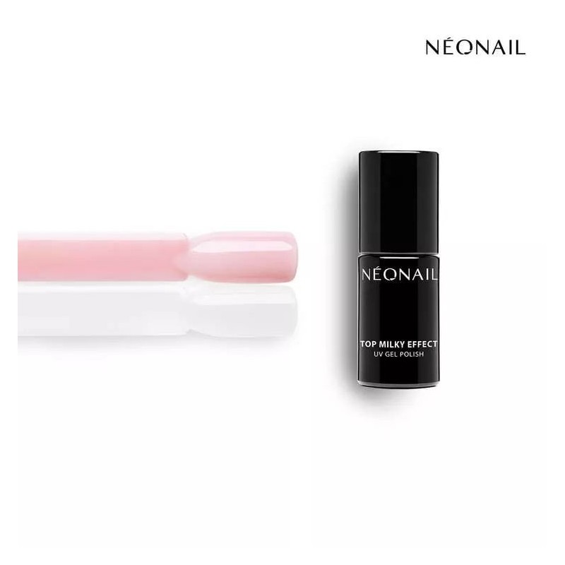 Milky Effect Creamy Top to biały top hybrydowy od NEONAIL o mlecznym, półtransparentnym kolorze, średniogęstej konsystencji i właściwościach samopoziomujących. Możesz nałożyć go w kilka chwil bez ryzyka zalania skórek, a po utwardzeniu nie wymaga przemywania – wszystko dzięki temu, że nie posiada lepkiej warstwy dyspersyjnej. Doskonale uzupełni piękne zdobienia paznokci, nadając im kremowe wykończenie. Milky Effect Creamy Top to top hybrydowy, który idealnie sprawdzi się w stylizacjach ślubnych, doskonale wpisując się w trend mlecznego manicure.
