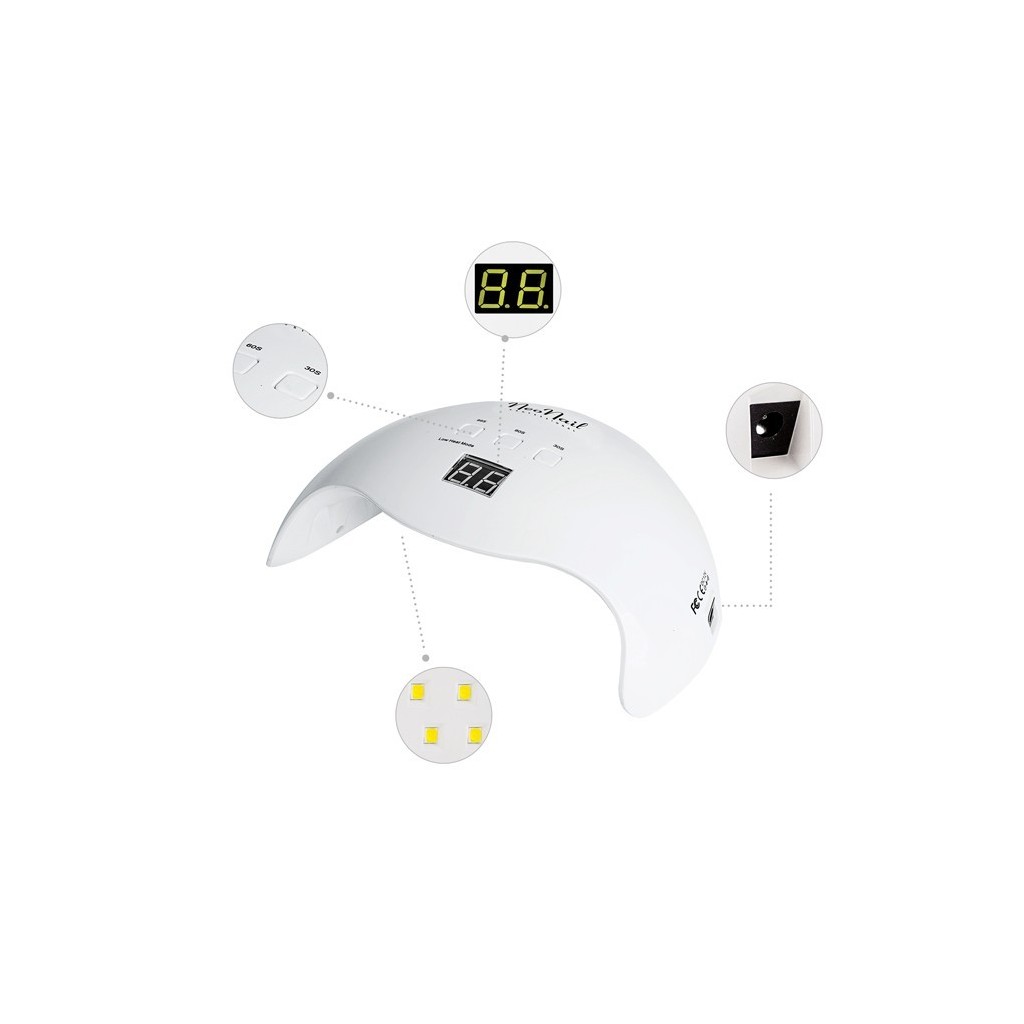 21 diod LED rozmieszczonych równomiernie zagwarantuje doskonałe utwardzenie każdej stylizacji hybrydowej lub żelowej. Ergonomiczny, opływowy kształt lampy pozwala na jednoczesne utrwalenie całej dłoni, a brak doczepianego spodu to dodatkowe ułatwienie podczas pedicure.